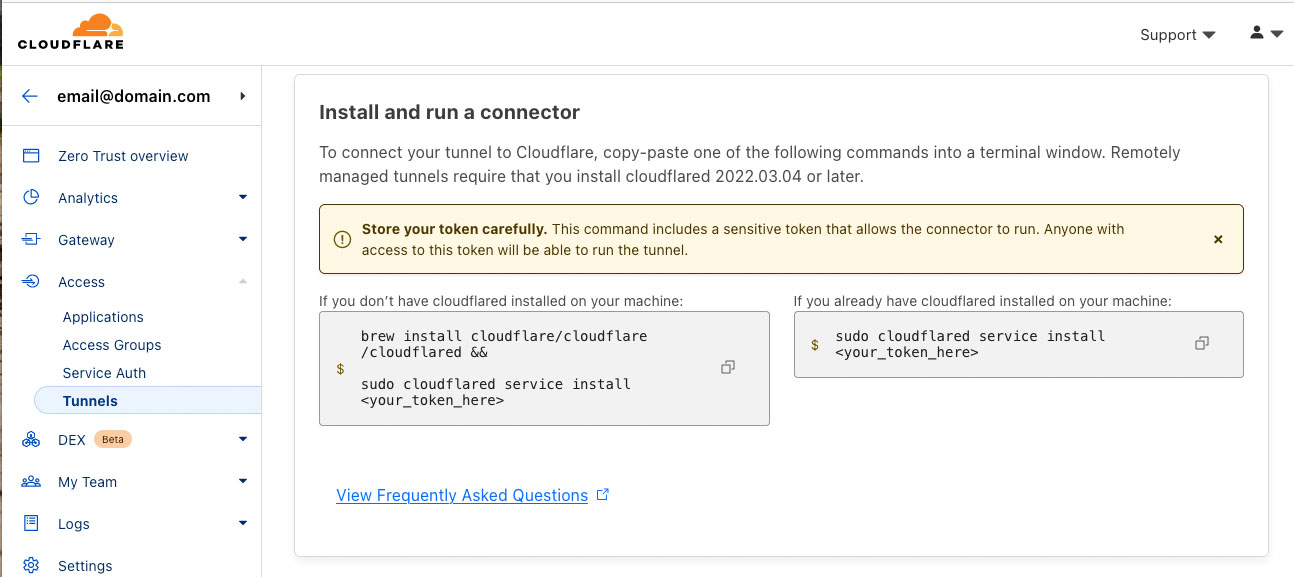 Before we can set up Cloudflare Tunnels, we need to generate an authentication token. This token will be used to authenticate your Cloudflare Tunnel and associate it with your Cloudflare account.